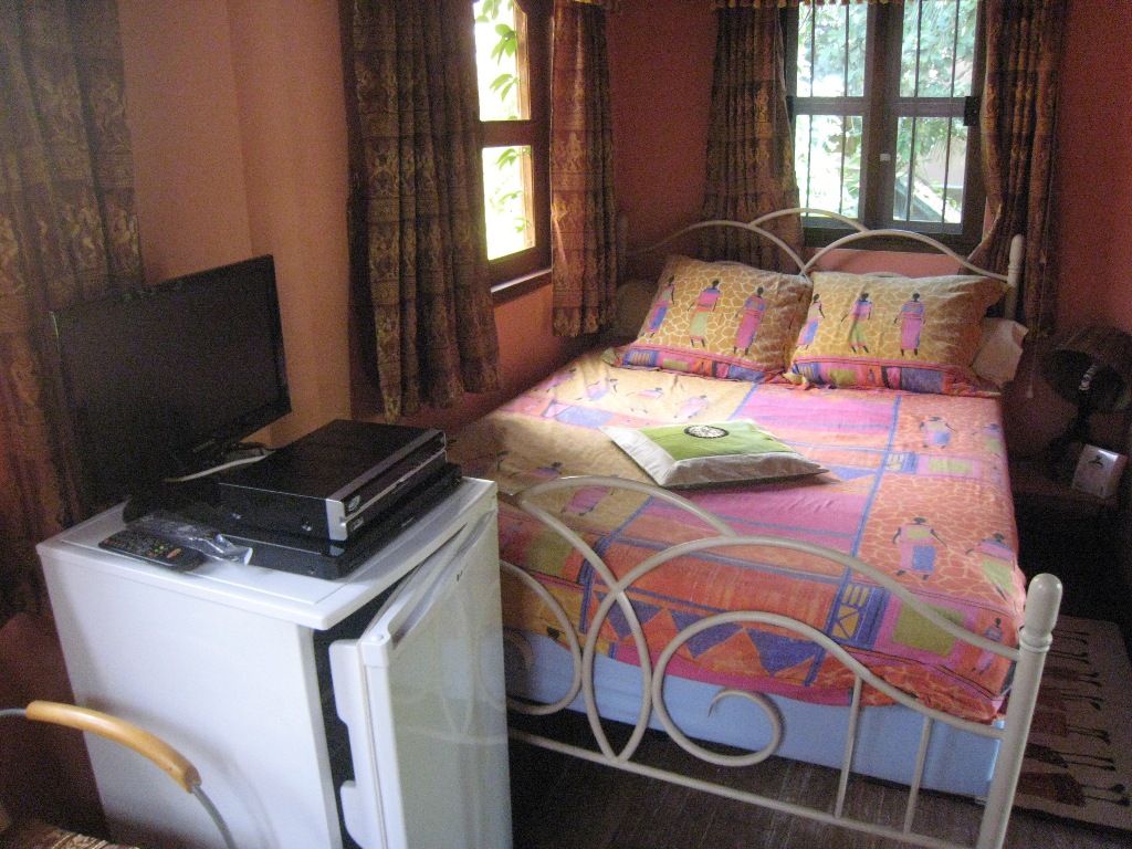 Intimité et verdure. La chambre est confortable, possibilité d'un lit supplémentaire.