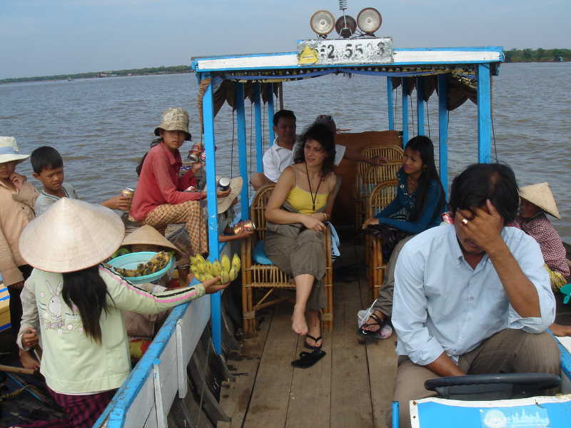 Mébon Oriental. 5eme jour : SIEM REAP - (PHNOM PENH) Là encore, si nous pouvons disposer d’un peu de temps, une halte à 18 Km de Siem Reap à la ferme du centre de la soie, de l’élevage des vers à soie au tissage traditionnel, les artisans traitent l’ensemble du processus et confectionnent de belles pièces aux motifs anciens. Dans l’'après midi : Racompagnement à l'aéroport ou départ pour Phnom Penh. En cours de route, petite pause à PREY PRAS. Superbes paysages de rizières et points d’eau où vous pourrez vous rafraîchir et déguster des spécialités locales. Photos de différents endroits que vous verrez lors de ce circuitEn 5 jours vous verrez tout cela et plus encore De très nombreuse photos sont agrandissables en cliquant dessus. Sur la route N6 nous ferons une pose à PREY PROS (sur les photos quelques un de vos guides : Ponlork, Visal, Sandra, Carine...) Pose baignade et déguisements en costume traditionnel Coucher de soleil depuis le Mont Bakhend. Pour monter la haut, vous avez la possibilité de prendre l'éléphant Angkor Wat Le Bouda couché (perché la haut) Vacance Cambodge voyage Cambodge Le palais de justice TEMPLE du TA PROHMAu cours de la visite des temples Vidéo GAG un peu hard de deux singes qui chutes tout en faisant tac tac boum boum (clic sur la photo) Le village flottant sur le lac Tonlè SapAu centre l'école (Vacance Cambodge voyage Cambodge) Les maisons flottantes Halte souvenirs Les différents moyens de navigation proposés Hôtel TA PROHM du même nom que le site et promenade en touk toukFabrique de la soie Découvrez nos circuits hors des sentiers battus tout en image :