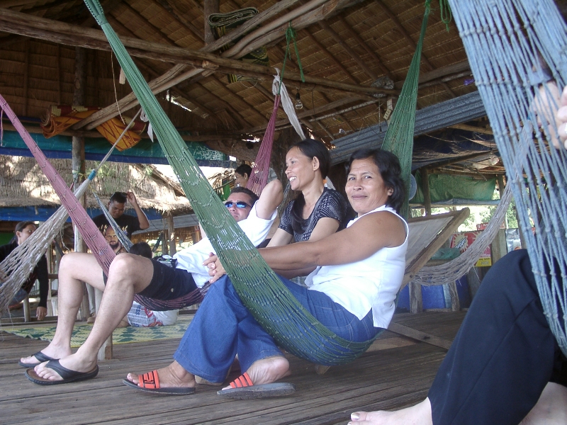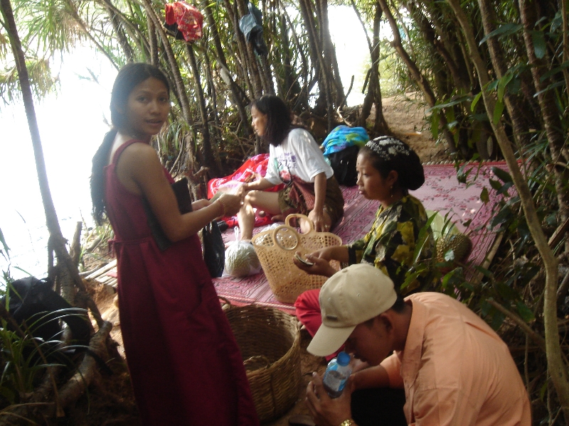 découvrir le Cambodge autrement. Photos du repas avec vos guides au bord du mékong.