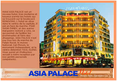 Vous trouverez les hôtels du Cambodge avec prix tarif hôtel Phnom Penh Cambodge, hôtel