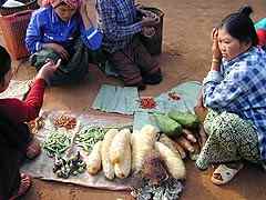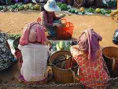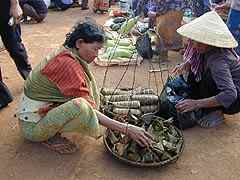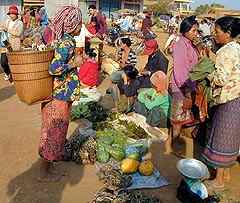 LE RATANAKIRI : régions du Cambodge pour votre circuit en photos au Cambodge. Un circuit passe par le Ratanakiri. Les photos du circuits au lac Tonlé Sap du Cambodge ou circuit à Angkor ne passent pas par le Rattanakiri.. LE RATANAKIRIPour voir un de nos circuits passant par le Ratanakiri cliquez ici afficher le plan du Cambodge dans une autre fenêtre Il faut une heure d'avion (aéroport actuellement fermé) ou 8 heures en véhicule pour se rendre dans le Ratanakiri, une province différente des autres. Peu peuplée et isolée, avec de très beau paysages, des forêts, de petits etangs et des cascades, et une vie au ralenti. Les routes sont en terre rouge et l'on ne peut y circuler qu'en voiture "pick up" tout terrain. Des ethnies différentes y habitent dans de petits villages dissémines dans les collines et se rendent dans le seul gros bourg de la région a Banlung pour y vendre leurs maigres récoltes de légumes ou de fruits sauvages et les produits de leur chasse. LE RATANAKIRI et ses mines de pierres précieuses (voir ici) Marché des tribus du Ratanakiri