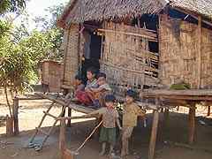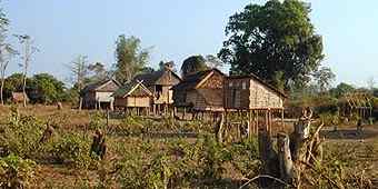 Villages Tribaux du RattanakiriLes villages sont assez particuliers, des petites maisons sur pilotis installées soit dans la forêt soit sur un terre plein sans protection du soleil