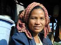 Les tribaux du Ratanakiri portent sur le dos, un panier particulier, très beau,de différente couleurs tressés en roseaux, panier de taille différente suivant leur âge. Ils y transportent tous leurs produits. la plupart des femmes portent sur la tête un turban fait a l'aide de leur "Sarong", morceau de tissus en coton, en général a petits carreaux a base de rouge.
