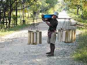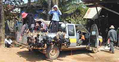 Transport des noix de coco en vélo et d'un cochon en moto...