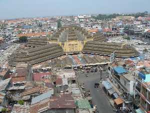 plaisirs… Jour 3 DIMANCHE : Le matin vers 8 heures visite du Palais Royal et de la Pagode d'Argent. A midi direction le marché Soria (à coté du marché central) le plus grand centre commercial du Cambodge, qui mélange tradition et modernité. Restaurants de spécialités commerces en tout genre... L’après midi visite de la Pagode Vat Phnom et du musée national (riche en statues provenant d'Angkor). Le soir, coucher de soleil en bateau au confluent du Tonlé Sap et du Mékong. Transfert à votre hôtel. Afficher le plan de Phnom Penh dans une autre fenêtre Afficher le plan du Cambodge dans une autre fenêtre Plan avec les restos, pub et hôtels tenus par des Français à Phnom penh au Cambodge De très nombreuse photos sont agrandissables en cliquant dessus. la visite du marché central (à droite, araignées et cafards)Cliquer sur l'image pour voir la vidéo (3.6 Mo) Le marché central vu de la coupole du marché Soria